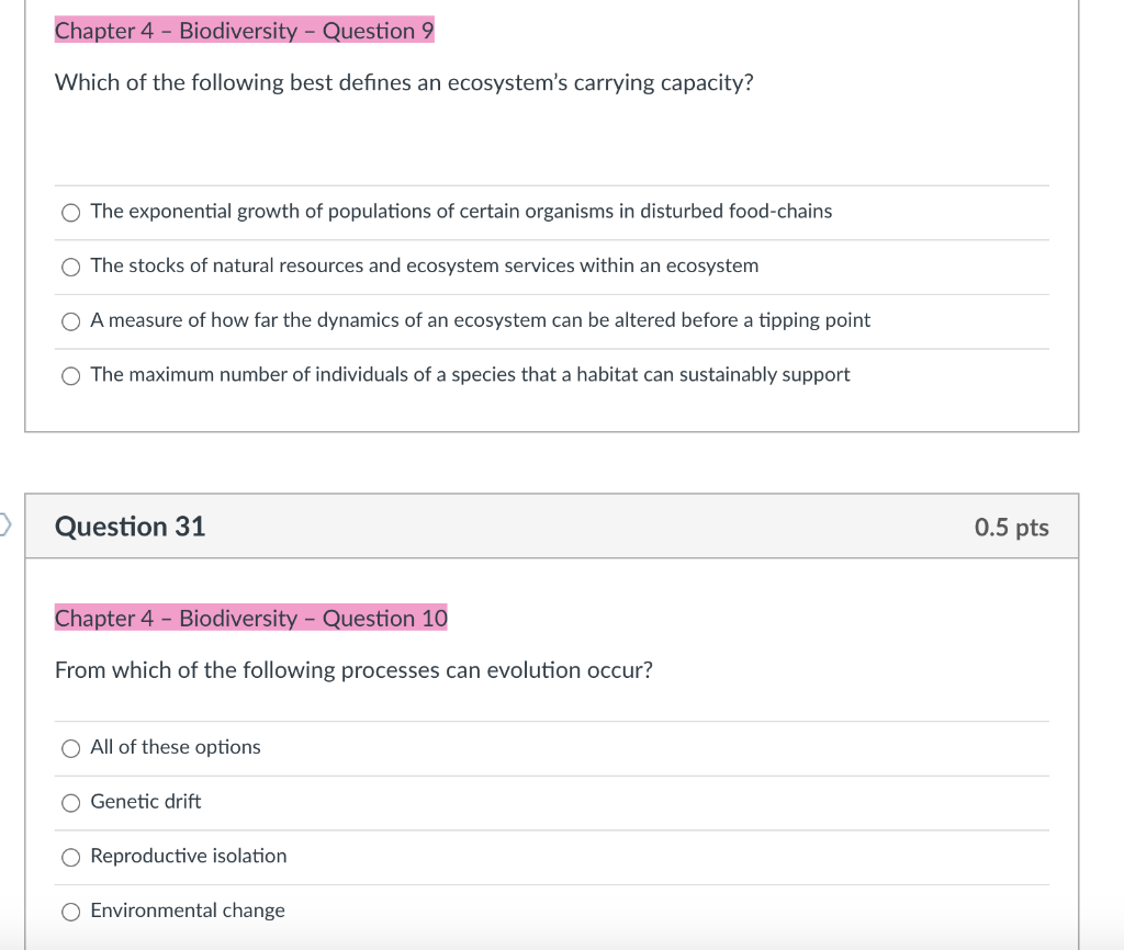 Solved Question 1 Which Of The Following Best Describes Biodiversity Course Hero